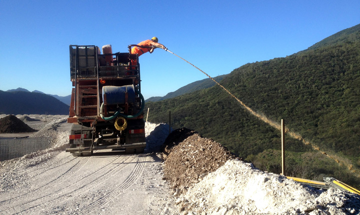 Begrünung von Steilböschungen und Deponieböschungen im Nass-Ansaatverfahren mit Beimischung von Erdsubstrat und hydraulischer Ansaat (Direktbegrünung mit autochtonem Saatgut).