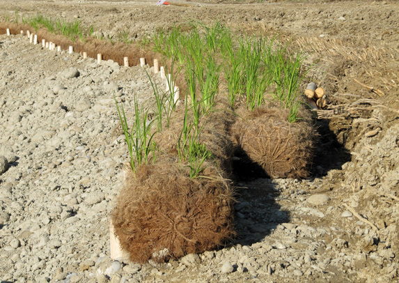Sur les talus sableux et très bien nivelés, sans grosses pierres, les nattes en fibres naturelles conviennent pour la protection contre l’érosion. Avec un taux de couverture de 100 %, ils empêchent le lessivage et le transport des matériaux fins. Ils permettent ainsi de très bien retenir les sédiments.