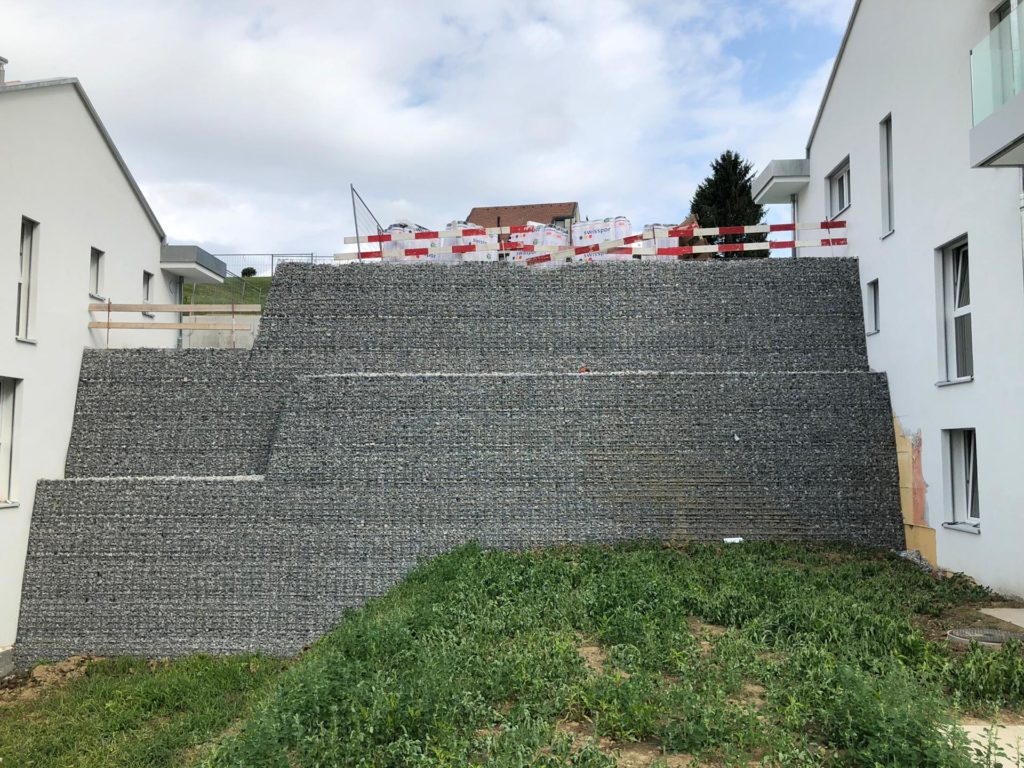 Brut ou galvanisé : le système FlexiMur permet de construire un mur de soutènement avec une pente raide reverdie. Le montage est simple. Il peut être remblayé avec des matériaux compactables du chantier. La statique est garantie selon les calculs de l’ingénieur.