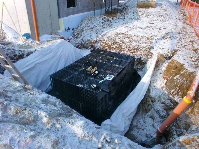 Les éléments Enregis® sont emballés dans une membrane étanche, puis recouverts d’un géotextile de protection.